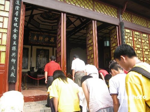 7月17日,千年學府岳麓書院內文廟前,來自海峽兩岸的四十多位家長、孩子共同向至賢先師孔子像行鞠躬禮。據悉,這些家庭都是“親子讀經班”的成員,為學習和傳統中華傳統文化,家長利用業余時間帶著孩子一起誦讀古文經典,促進溝通。 中新社發 劉雙雙 攝