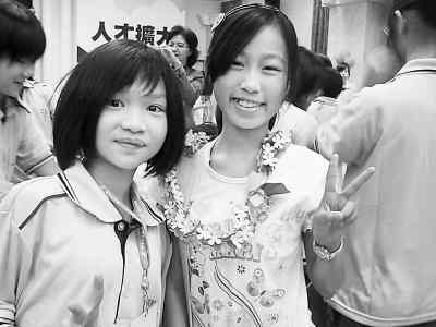 來自臺北縣的蔡欣雅和武漢的張秋琪也在人群當中,拉著手甜甜地笑著。相處一天,同為13歲的她們倆早就熟悉了。從早晨8時互相交換心形名字牌,到晚上6時左右一起回來參加聯歡晚會,她們已經在一起相處了大約10個小時,大有相見恨晚之意。