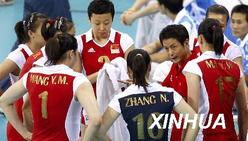 8月21日,中國隊主教練陳忠和在比賽暫停間隙為球員布置戰術。當日,北京奧運會女排半決賽在首都體育館進行,中國隊以0比3負于巴西隊,無緣決賽。新華社記者凡軍攝