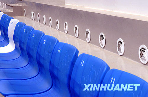 這是“水立方”內觀眾座椅附近設計巧妙的空調通氣孔(5月16日攝)。 新華社記者王頌攝
