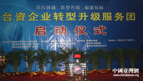 在21日閉幕的第四屆兩岸經貿文化論壇上,中共中央臺辦主任王毅宣布了加強兩岸交流合作、共同應對國際金融危機的十項政策措施。其中明確提出,要“進一步支持和幫助大陸臺資企業轉型升級,成立由兩岸專業人士共同組成的臺資企業轉型升級服務團”,“支持臺資企業在大陸實現可持續發展”。因應此一承諾,“臺資企業轉型升級服務團”在最短的時間內集結完畢來到了臺資企業密集的東莞市。