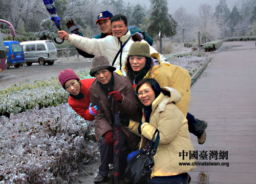 中國(guó)臺(tái)灣網(wǎng)2月28日消息 昨天,來(lái)湖南參訪的近40位臺(tái)南市地方民意代表、里長(zhǎng)走進(jìn)清溪潺潺、奇峰聳立的張家界旅游風(fēng)景區(qū),游覽黃龍洞和武陵源風(fēng)景區(qū),26日晚上,正值雨季的張家界適逢一場(chǎng)較大的雨雪,昨天武陵源內(nèi)海拔稍高的地方出現(xiàn)了銀裝素裹的霧凇奇觀,引起來(lái)自寶島的客人驚嘆。