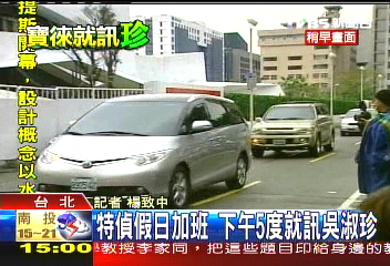 報道稱,臺特偵組今天下午再度就訊吳淑珍,派出了林嚞慧、李海龍及周士榆等3位檢察官,3輛偵防車中也裝載了錄音、錄像器材,而鄰近的臺北醫(yī)學院也隨時待命協(xié)助。