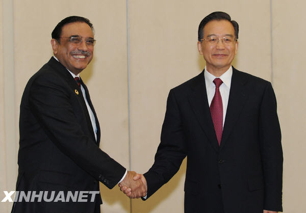 4月17日,國務院總理溫家寶在海南三亞會見巴基斯坦總統扎爾達里。新華社記者 黃敬文 攝