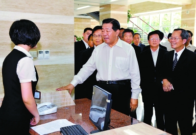 5月17日,中共中央政治局常委、全國政協主席賈慶林考察廈門商業銀行。本報記者 常剛 攝