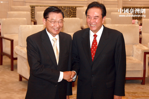海協會會長陳云林28日下午在人民大會堂會見了臺灣海基會董事長江丙坤率領的海基會新聞交流團一行。(中國臺灣網 田云鵬 攝)