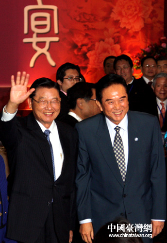 21日晚間,海基會(huì)設(shè)宴款待參加兩會(huì)領(lǐng)導(dǎo)人第四次會(huì)談的海協(xié)會(huì)代表團(tuán)全體成員。圖為海協(xié)會(huì)會(huì)長(zhǎng)陳云林(右)與海基會(huì)董事長(zhǎng)江丙坤(中國(guó)臺(tái)灣網(wǎng) 李徽 攝)