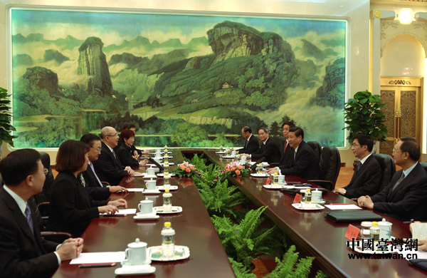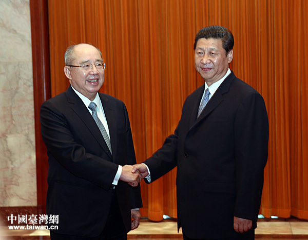 6月13日,中共中央總書記習近平在北京人民大會堂會見中國國民黨榮譽主席吳伯雄。(中國臺灣網 王偉 攝)