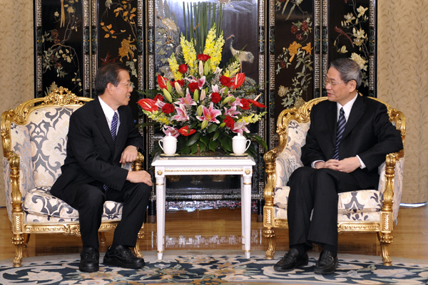 國務院臺灣事務辦公室主任張志軍30日下午在深圳會見了臺灣維新基金會董事長謝長廷,雙方就兩岸關系和平發展問題交換了意見。(新華社 梁旭 攝)