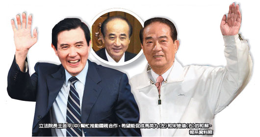 國民黨目前執(zhí)政聲勢低迷,加上國民黨主席選舉在即,國親高層之間若能達成和解,在臺灣“立法院”運作上,開啟國親合作的模式,也許能創(chuàng)造政績紅利,促成兩黨雙贏,一方面避免親民黨泡沫化的尷尬問題,外界也不致批評國民黨無情。