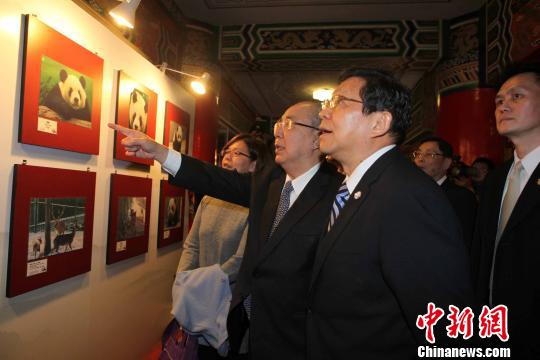 會見結束后,陳德銘、吳伯雄等人還來到另一個樓層,觀看了墻上所掛團團、圓圓和圓仔的照片。