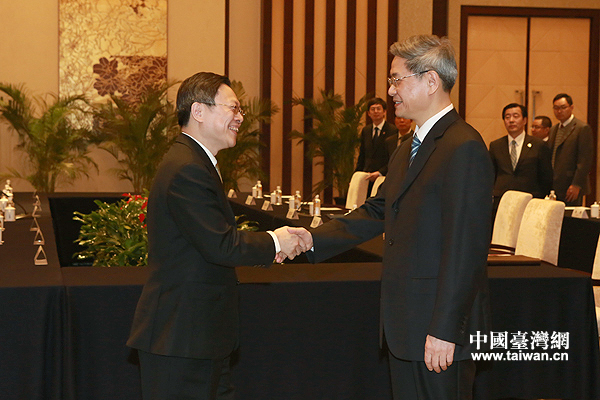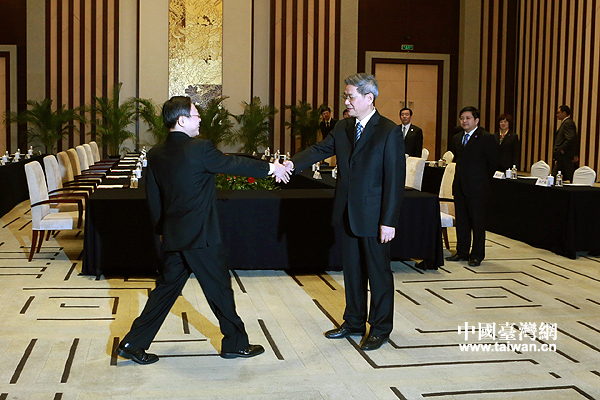 國臺辦主任張志軍2月11日下午在南京與臺灣方面陸委會(huì)負(fù)責(zé)人王郁琦舉行雙方兩岸事務(wù)主管部門負(fù)責(zé)人首次正式會(huì)面。(中國臺灣網(wǎng) 田云鵬 攝)