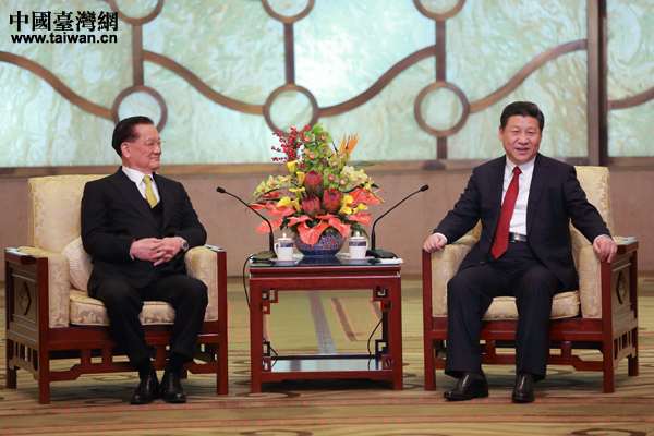 18日下午,習近平在北京釣魚臺國賓館會見了中國國民黨榮譽主席、兩岸和平發展基金會董事長連戰及隨訪的臺灣各界人士。(中國臺灣網 于斯文 攝)