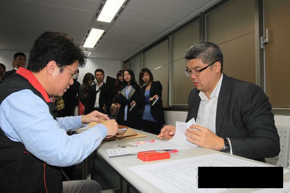 連勝文今早9點(diǎn)50就到國民黨臺北市黨部,但市黨部堅(jiān)持10點(diǎn)才可進(jìn)入領(lǐng)表,他只好在辦公室和黨部同仁聊天,怎知臺北市議員鐘小平后發(fā)先至,趁連在寒暄時(shí),搶得頭香,第一個(gè)領(lǐng)表。(中國臺灣網(wǎng) 朱煉)