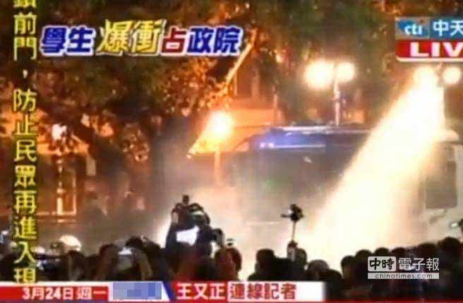 警方動用鎮暴水車強制驅離抗議學生。(圖片取自臺媒)