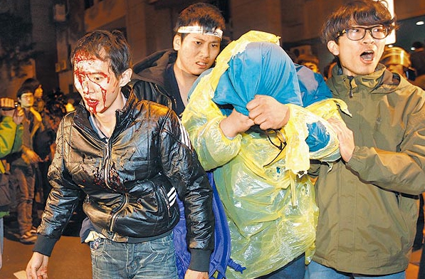警方以警棍、盾牌強制驅離下,民眾頭破血流。來自臺媒
