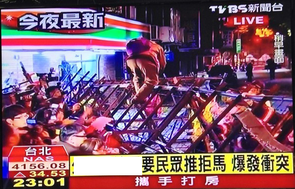 目前,第一波沖突暫時停歇,但“立法院”外仍有數百人與警方對峙,警方已舉牌兩次警告,并采取嚴厲措施。只要有人進入管制區立刻上銬逮捕帶走,已有9人因“妨礙公務”罪名被捕。另有約百名鎮暴警察,全副裝備在外圍戒備。(中國臺灣網 朱煉)