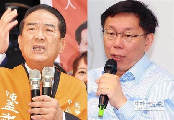 臺北市長當選人柯文哲(右)邀請宋楚瑜擔任他上任后的首席顧問。(圖片來源:臺灣中時電子報)