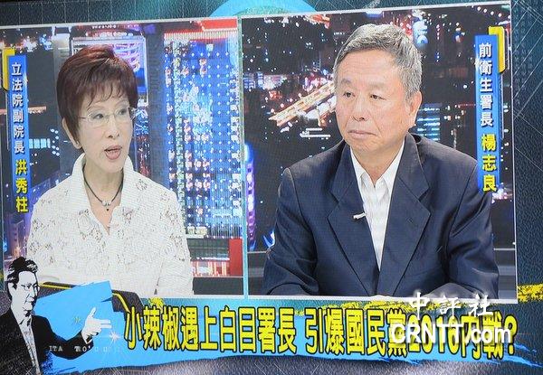 “立法副院長(zhǎng)”洪秀柱與前“衛(wèi)生署長(zhǎng)”楊志良27日一起接受媒體人趙少康《少康戰(zhàn)情室》節(jié)目專(zhuān)訪,在一個(gè)小時(shí)的節(jié)目里完全沒(méi)有戰(zhàn)火,只有互相吹捧,洪秀柱在節(jié)目里還拿了三本楊志良的書(shū)說(shuō)認(rèn)同楊的理念,如果當(dāng)選“總統(tǒng)”就會(huì)為請(qǐng)楊擔(dān)任“行政院長(zhǎng)”。
