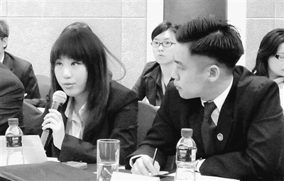 淡江大學學生林欣諭就兩岸青年學生交流發表自己的看法。人民日報 記者孫立極攝