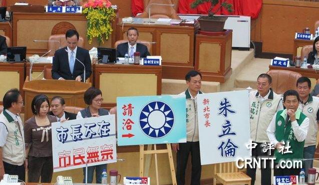 據香港中評社報道 新北市議會3日舉行第2屆第1次定期會市政總質詢,由民進黨展開共同質詢和個人質詢,民進黨議員舉牌向國民黨主席、新北市長朱立倫抗議,認為朱立倫只處理黨務,沒時間處理市政,并有議員要求朱立倫好好思考,朱在講臺上被“罰站”了30分鐘。