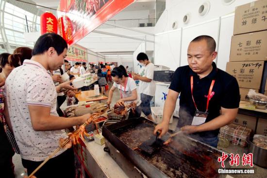 資料圖:5月18日,“第十七屆海峽兩岸經(jīng)貿交易會臺灣美食小吃展”在福州海峽國際會展中心舉行。士林夜市、花園夜市等臺灣4大夜市團隊帶來臺灣各地小吃,為福州市民送上最地道的臺灣美食盛宴。李南軒 攝