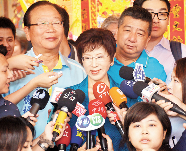 洪秀柱稱,國民黨親民黨有合作空間,不會放棄合作機會。圖為洪參加保福宮中元法會接受采訪。 資料圖片