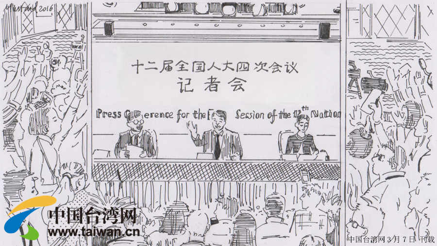 【漫話兩會(huì)】3月6日,十二屆全國(guó)人大四次會(huì)議新聞中心舉行記者會(huì),邀請(qǐng)國(guó)家發(fā)展和改革委員會(huì)主任徐紹史就“經(jīng)濟(jì)社會(huì)發(fā)展情況和‘十三五’規(guī)劃《綱要》”的相關(guān)問(wèn)題回答中外記者的提問(wèn)。本次全國(guó)人大會(huì)議預(yù)計(jì)將安排在梅地亞中心舉行15至16場(chǎng)記者會(huì),邀請(qǐng)人大和國(guó)務(wù)院部門(mén)負(fù)責(zé)人出席,解答社會(huì)各界關(guān)注的熱點(diǎn)問(wèn)題。3月16日上午大會(huì)閉幕之后,李克強(qiáng)總理將舉行中外記者會(huì)。本次全國(guó)政協(xié)會(huì)議計(jì)劃舉行4場(chǎng)記者會(huì),主題分別是:政協(xié)委員談適應(yīng)引領(lǐng)新常態(tài)推進(jìn)供給側(cè)結(jié)構(gòu)性改革、政協(xié)委員談惠及民生共享發(fā)展、政協(xié)委員談綠色發(fā)展保護(hù)生態(tài)環(huán)境、政協(xié)委員談提振經(jīng)濟(jì)發(fā)展信心。(中國(guó)臺(tái)灣網(wǎng) 陳潤(rùn)雯 繪)