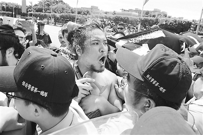 “總統(tǒng)府”外廣場(chǎng)上的“原住民”抗議者。 張榮隆攝