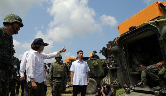 中國(guó)臺(tái)灣網(wǎng)8月26日訊 自22日拉開(kāi)帷幕的臺(tái)軍“漢光32號(hào)演習(xí)”昨天(25日)來(lái)到了“高潮”。此次為期5天,號(hào)稱(chēng)模擬“大陸猝然對(duì)臺(tái)灣發(fā)動(dòng)攻擊”的攻防演練中,最大實(shí)彈科目“聯(lián)勇操演”,25日上午在屏東三軍聯(lián)訓(xùn)基地登場(chǎng)。臺(tái)灣當(dāng)局領(lǐng)導(dǎo)人蔡英文頭戴鋼盔、身著迷彩防彈背心,全神貫注看完整場(chǎng)演習(xí)。這也是蔡英文上任后,首度參與臺(tái)軍演習(xí)。她現(xiàn)場(chǎng)宣稱(chēng),臺(tái)軍就站在“攻擊發(fā)起線”上,請(qǐng)大家跟她一起往前沖。