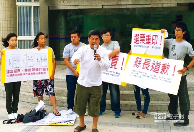 反賭團體“澎湖青年陣線”抗議公投選票印制有瑕庛。