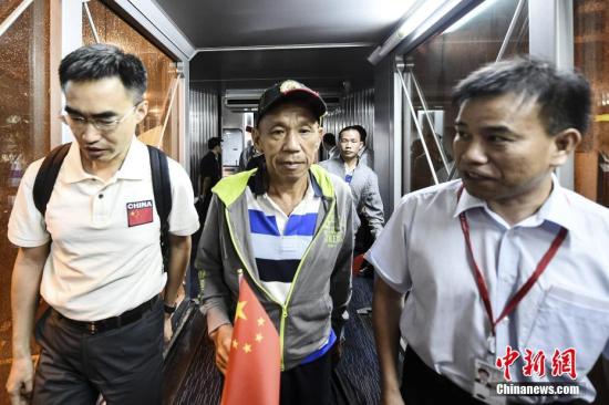 10月25日,遭索馬里海盜劫持的阿曼籍臺(tái)灣漁船“NAHAM3”上的9名中國船員抵達(dá)廣州。2016年10月22日,遭索馬里海盜劫持的阿曼籍臺(tái)灣漁船“NAHAM3”上的9名大陸船員、1名臺(tái)灣船員和其他國家船員26名幸存人員全部安全獲救,并在聯(lián)合國有關(guān)機(jī)構(gòu)協(xié)助下于23日抵達(dá)肯尼亞。25日,除一名大陸船員因健康原因暫留肯尼亞接受進(jìn)一步治療外,其余9名獲救中國船員乘坐南航班機(jī)返回廣州。中新社記者 鐘欣 攝