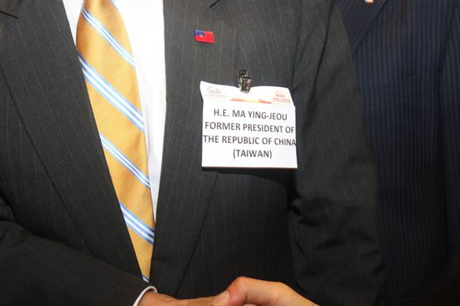 馬英九自制的名牌,上寫Former President of The Republic of China(Taiwan)
