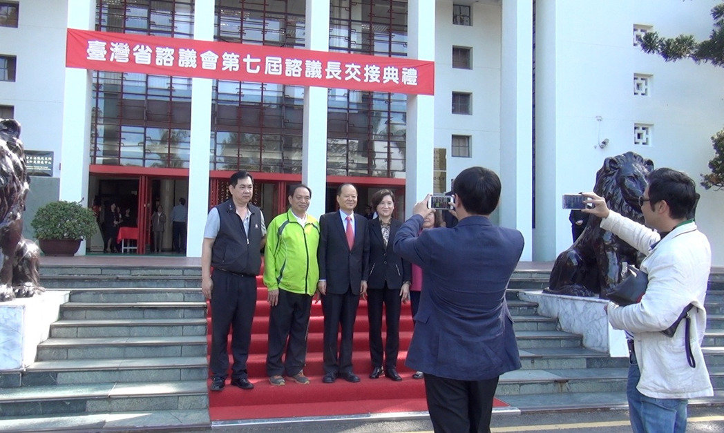 臺灣省咨議會咨議長鄭永金(左三)今天接任,但臺“行政院”未同時派任其他咨議員,讓臺灣省咨議會的未來定位值得觀察。(圖片來源:臺灣《聯合報》)