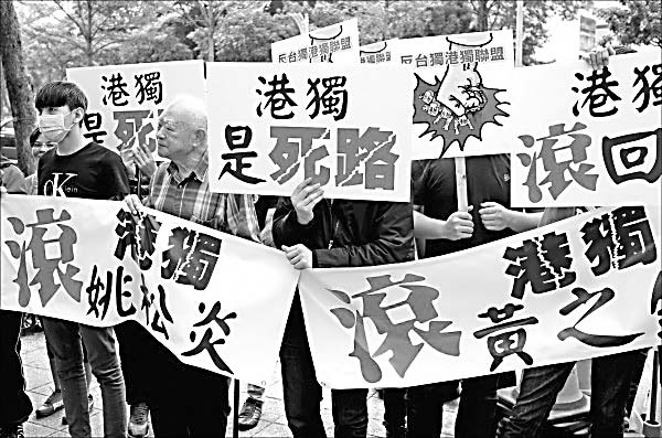 臺灣統(tǒng)派群眾抗議“港獨”分子訪臺。