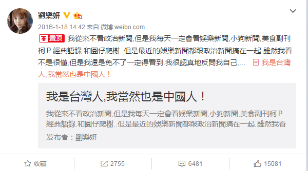 A:我覺得我做的是對(duì)的,我說(shuō)的也沒錯(cuò)。而且我覺得我是中國(guó)人這件事情,不是我現(xiàn)在才覺得我是一個(gè)中國(guó)人,我從小到大都覺得我是一個(gè)中國(guó)人,為什么不能講?