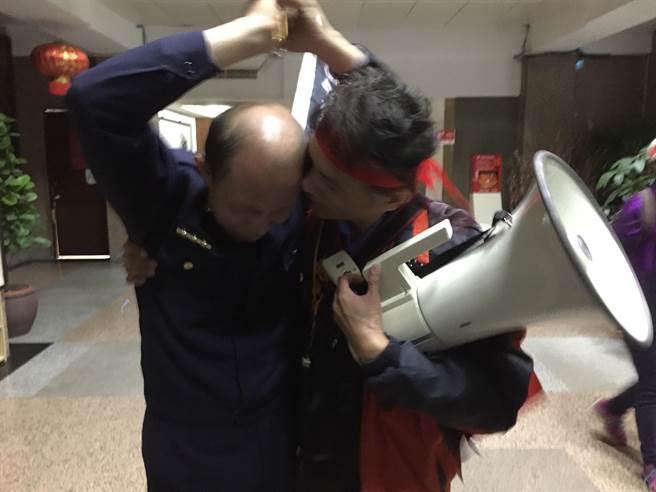 抗議群眾向警衛(wèi)表示“我們不是為難你”,并說(shuō)“好,我們離開(kāi),趕快往‘立法院’集中”,一行人很快離去。