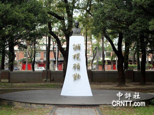 位于中興大學舊校門的蔣介石銅像已被中興老校長湯惠蓀的銅像。(圖片來源:中評社)