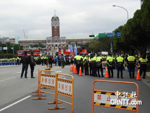 23日上午,蔡英文辦公室前本來就有臺少數民族團體抗議活動,到23日下午仍未結束,F場警方為避免兩場抗爭活動發生意外,派出超過百位員警到現場維持秩序。