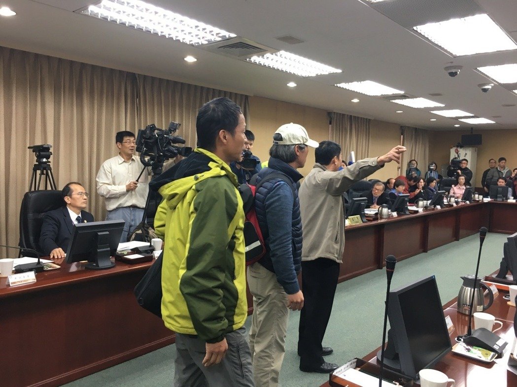臺“考試院副院長”李逸洋7日主持“公務人員年金改革案公聽會”,臺退伍軍人進場,拍桌飆罵,在警衛護送下,李逸洋離開會場,會議中斷。(圖片來源:臺“聯合新聞網”)