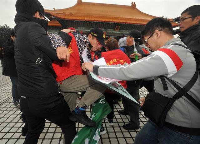 “228”紀念日當天,臺灣“統獨”兩派曾在中正紀念堂前大打出手。(臺媒圖)