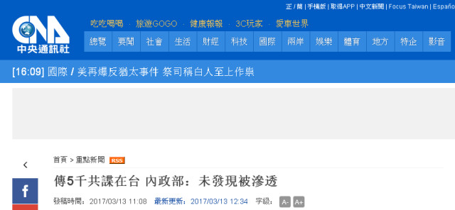 東森新聞云:“傳5000共諜在臺滲透政府機關 ‘內政部’:沒有發(fā)現(xiàn)被滲透”↓