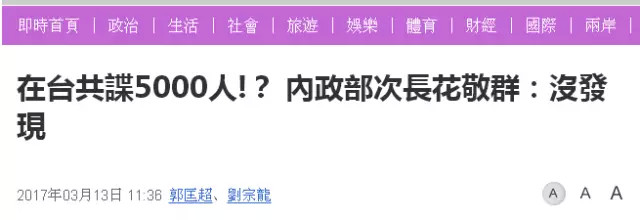 比如,多家臺媒今天報道了這樣一則消息:“5000共諜潛伏在臺灣”。