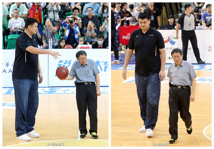 柯文哲與籃球巨星姚明在2016年10月11日擔任海峽杯籃球邀請賽臺北站的開球嘉賓,原本身高就不高的柯文哲,一站到姚明身旁更顯得嬌小,形成了最萌身高差的逗趣畫面。
