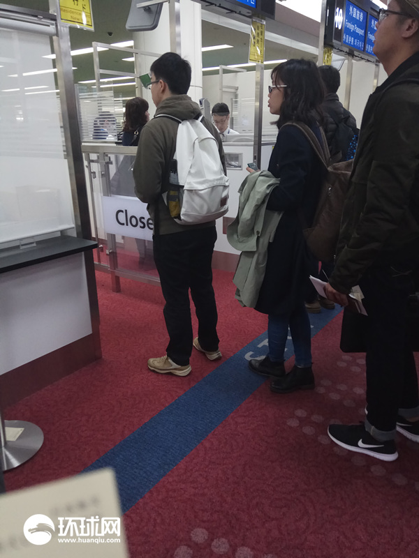 環球網記者排在該名女孩后面,想看日本入境官員如何處理這個所謂的“臺灣國護照”。但經觀察,輪到該女子入關檢查時,日本官員似乎注意到其“護照”封面被涂改的事實,卻將其放行入關,該女子“護照”封面的“臺灣國”貼紙也沒有被撕去。