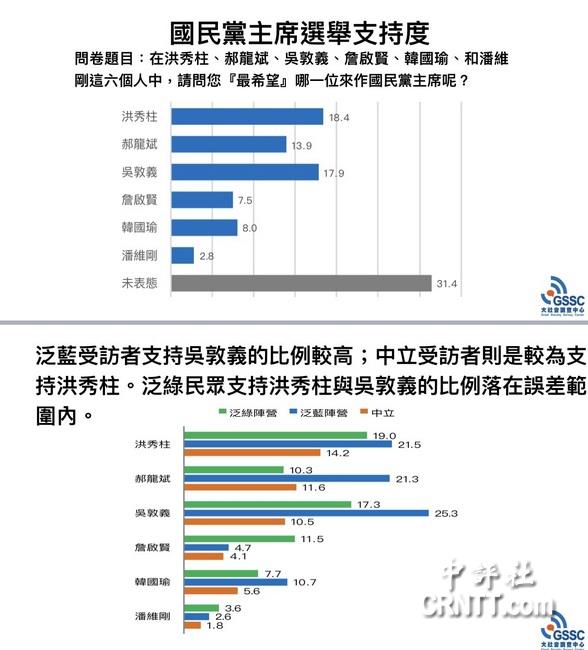國民黨主席選舉民調:洪秀柱第一 吳敦義緊隨其后