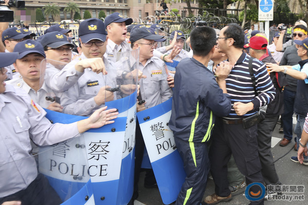 反年金改革團體29日發起軍公教大游行,與警爆發激烈沖突。(圖片來源:臺灣“東森新聞云”)