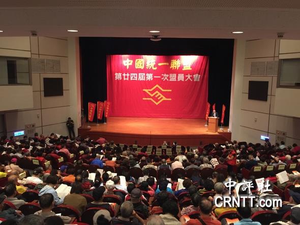 臺灣“中國統(tǒng)一聯(lián)盟”9日下午在公務人力發(fā)展中心卓越堂舉行第24屆盟員大會,各地盟員,包括專程北上的桃竹等地的分會盟員,500、600人擠滿會場。