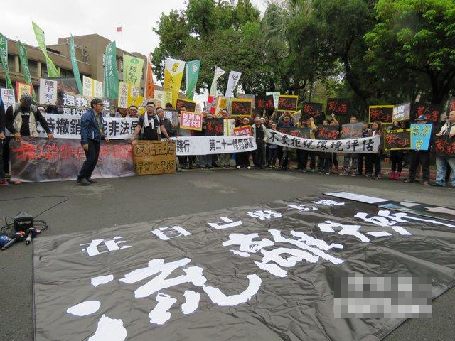 近百臺灣少數(shù)民族人士包圍“行政院”,痛斥“在自己的土地上流離失所!‘蔡政府’不要臉!”(圖片來源:中評社)