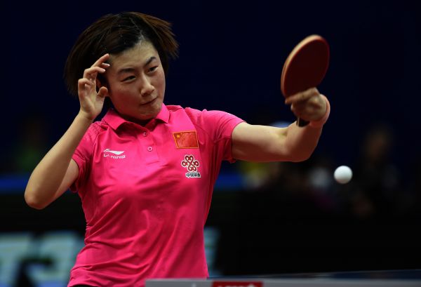 4月10日,中國隊(duì)選手丁寧在比賽中回球。她以3比1戰(zhàn)勝中國臺(tái)北隊(duì)選手劉昱昕。新華社記者韓瑜慶攝